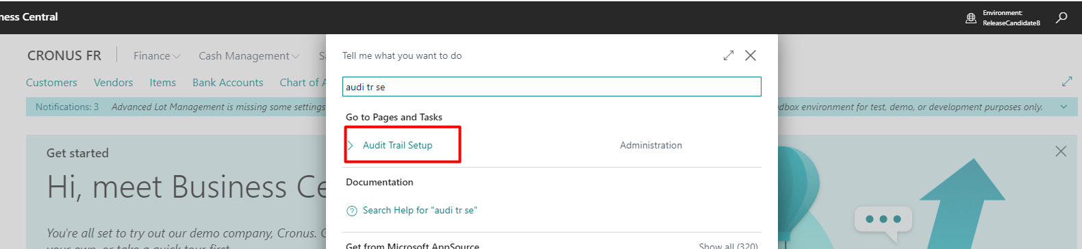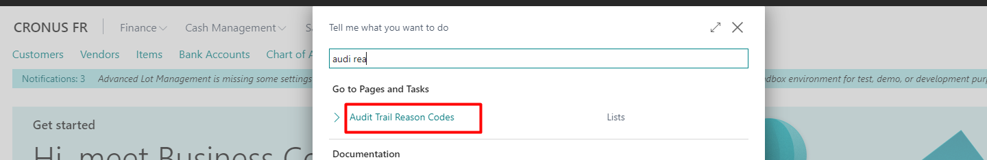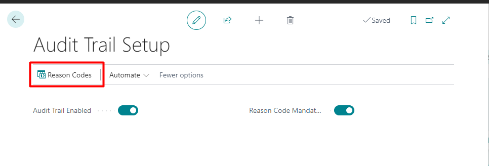 To create Reason Codes, go to the “Audit Trail Reason Codes”. It is possible to access it through the Search Bar or through the Audit Trail Reason Setup: