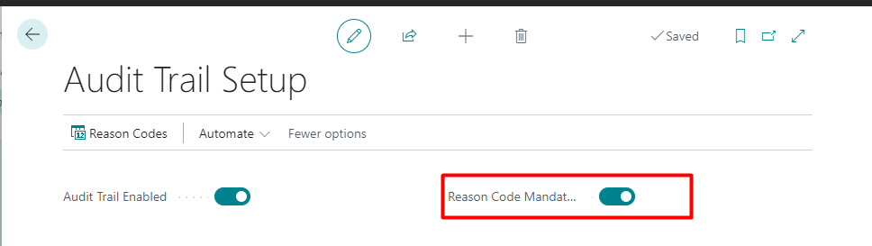 If you want a reason to update lot information, is possible to create reason codes and make them mandatory when updating these info. For that, enable “Reason Code Mandatory”: