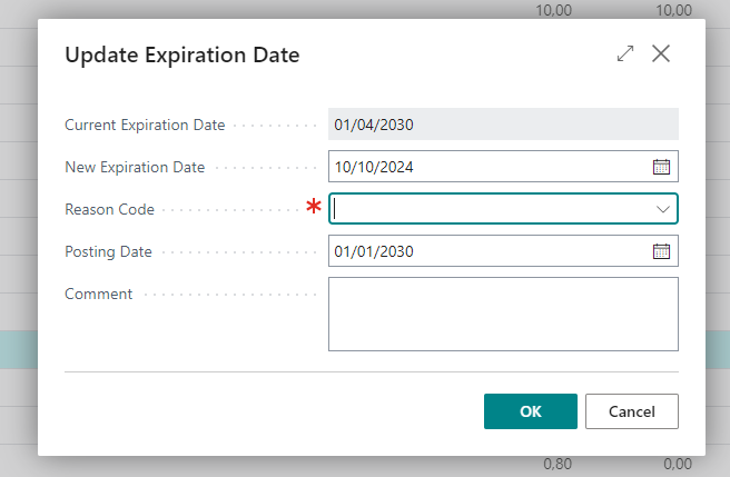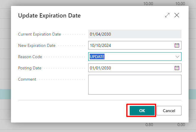 For example, if Updating an Expiration Date for lot: