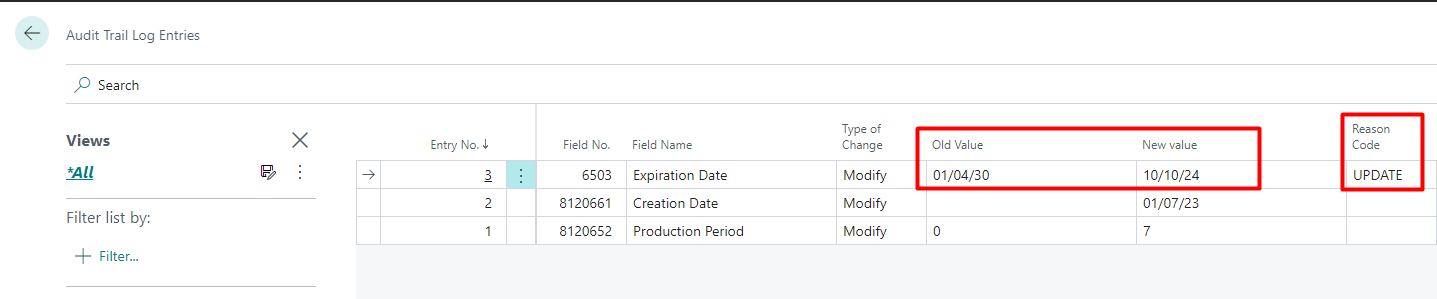 After that, if access to “Audit Trail Log Entries”, the update is shown, with the reason code associated:
