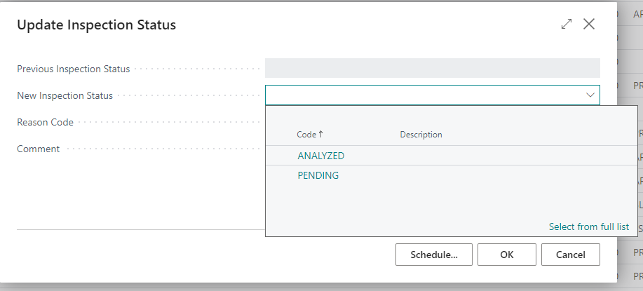 It’s possible to update Inspection Status in different pages: Advanced Lot No. Information List, Lot No. Information List or Lot No. Information Card.
