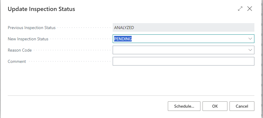 If the lot does not yet have an inspection status, you can assign one by selecting a value in the New Inspection Status field.