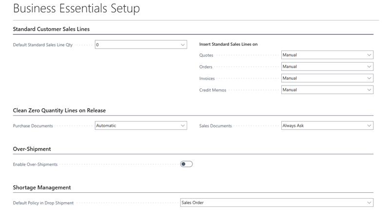 | Insert Standard Sales Lines on Quotes, Orders, Invoices, Credit Memos | Sets the default value of Insert Recurring Lines on Quotes when creating dynamically Standard Customer Sales Code. |