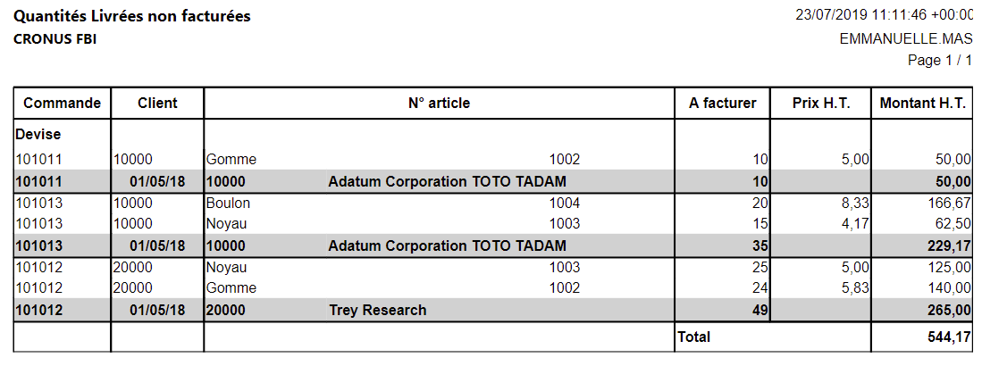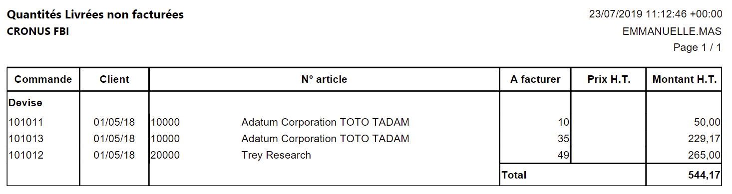 Le rapport Livré non facturé , vous permet de contrôler la liste des articles livrés et dont la facturation reste à établir.