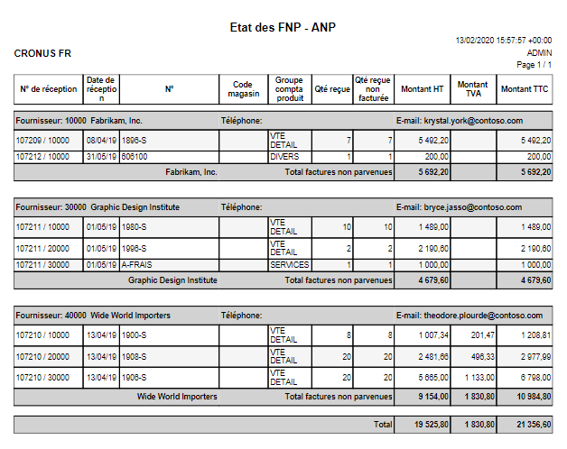 A la validation du rapport bouton « Imprimer », celui-ci complète automatiquement la feuille comptable définie avec les écritures FNP/ANP créées.