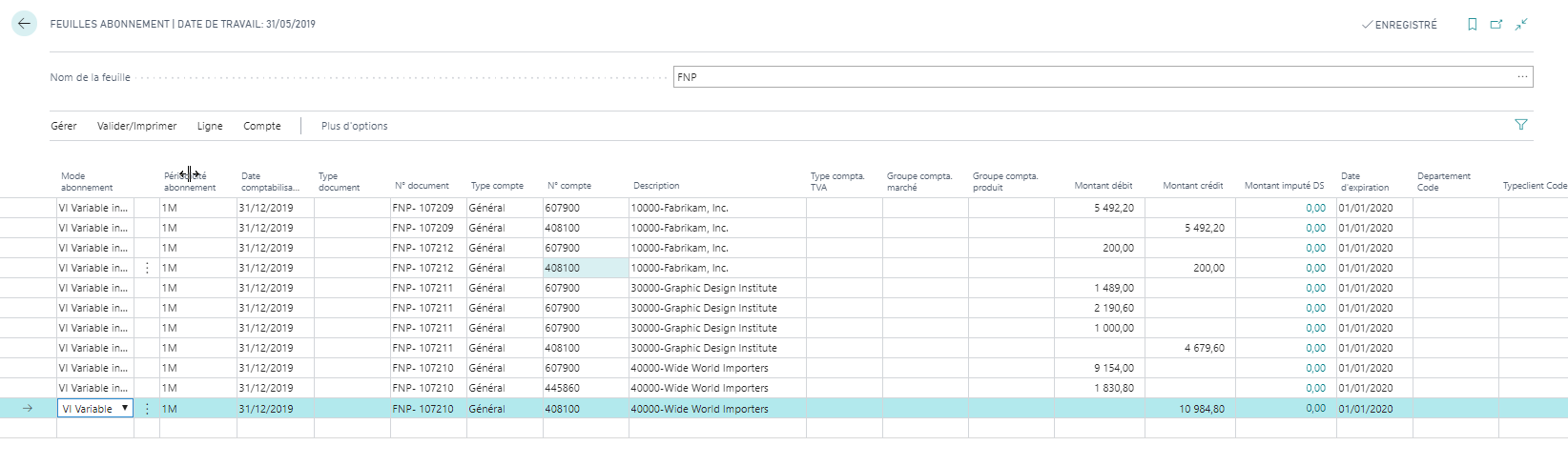 Il ne reste plus qu’à comptabiliser ces écritures (F9). A noter que les lignes sont créées avec un mode « Variable Inversé ». Cela veut dire qu’elles sont automatiquement extournées à J+1.
