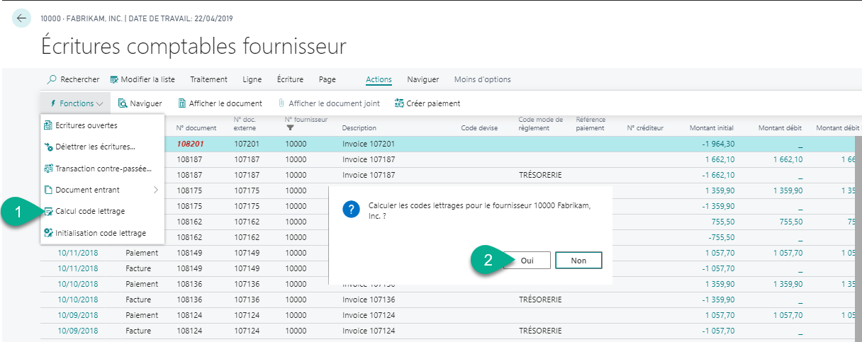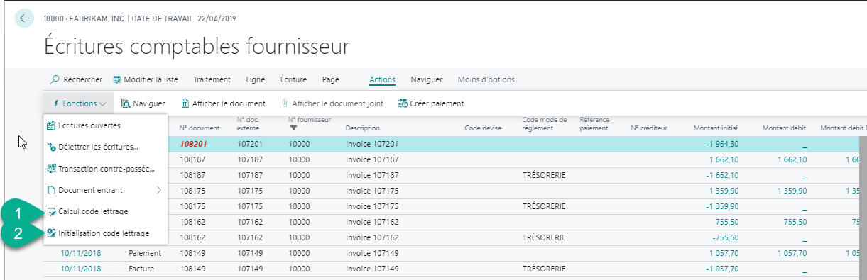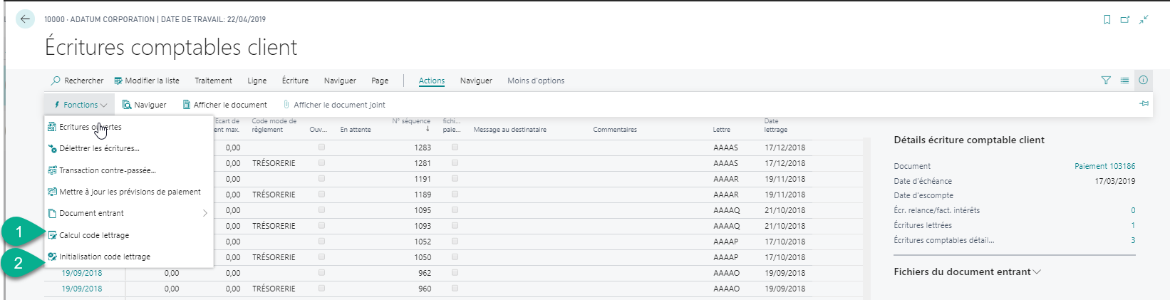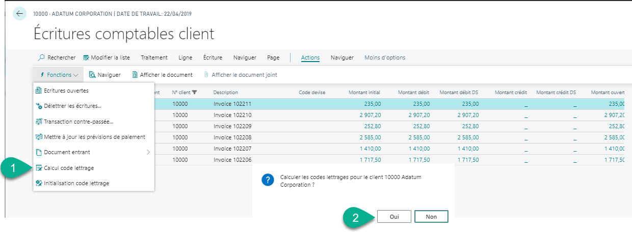- Actions > Fonctions > Calculer code lettrage
