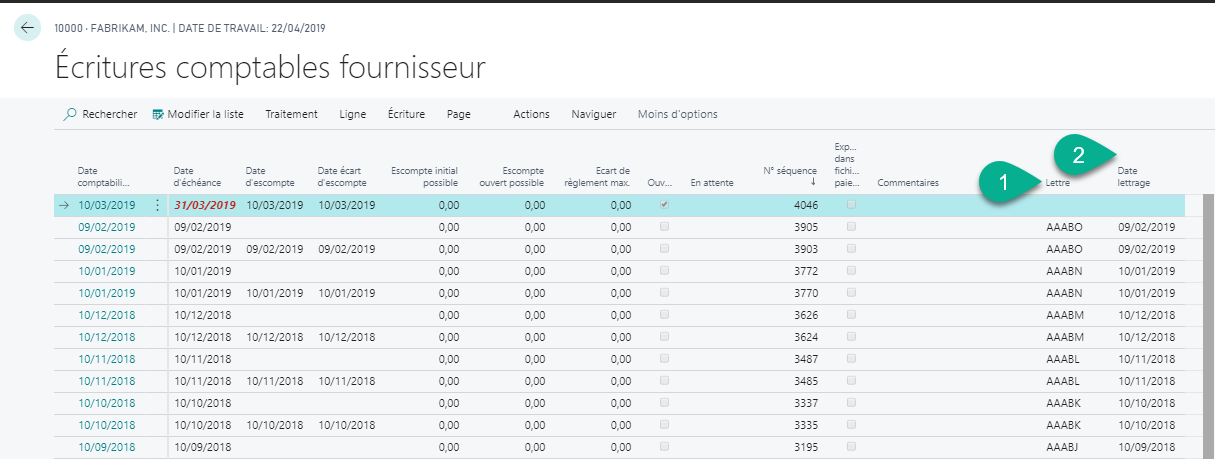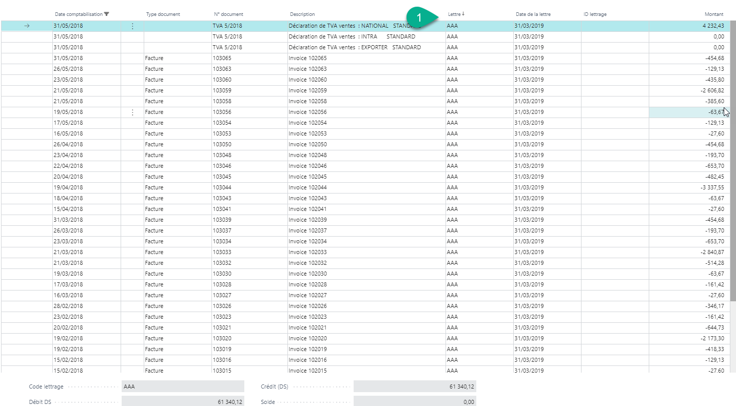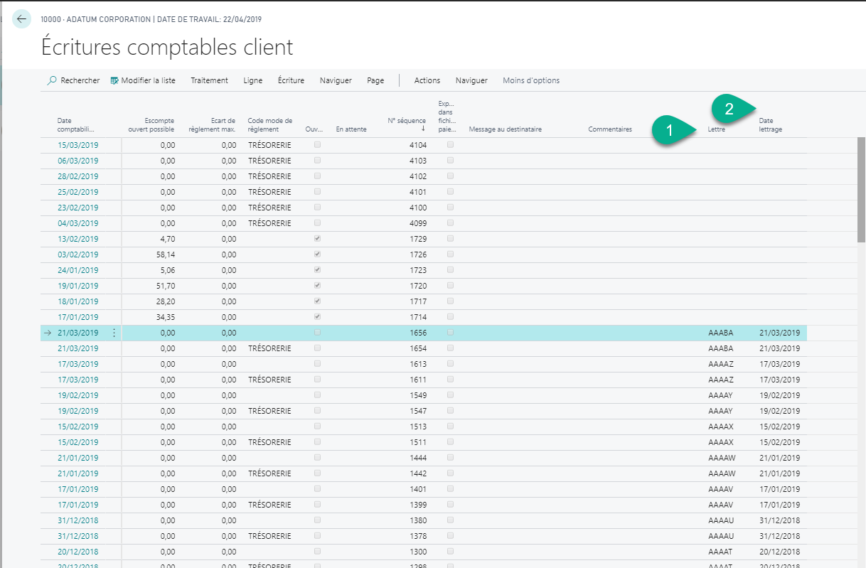 Les colonnes codes lettrage et date lettrage situées à droite sont désormais complétées avec un code alphabétique.