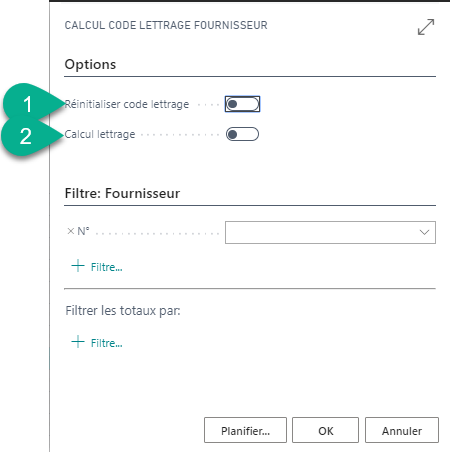 | Calcul code lettrage | Réaffectation des codes lettrage |