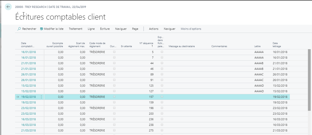 Depuis les écritures comptables client, il est possible d’appliquer le lettrage par code alphabétique unitairement pour un client. Deux fonctions ont été ajoutées :