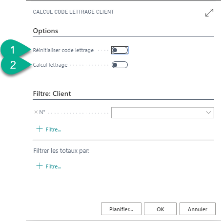 | Calcul code lettrage | Réaffectation des codes lettrages d’un client |