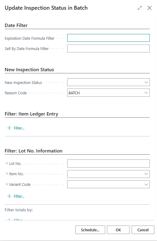 - For example, you can update the inspection status for all lots related to a specific item or for lots with a particular expiration date.