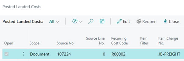 This will open the Posted Landed Costs page: