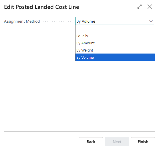 Yes → A new page opens to select the Item Charge Assignment Method. After choosing the new Item Charge Assignment Method, the related assignments are re-calculated and updated.