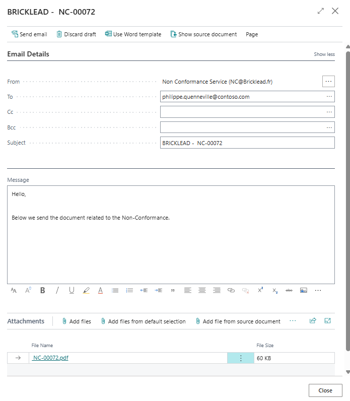 Sending a Non-Conformance by Email