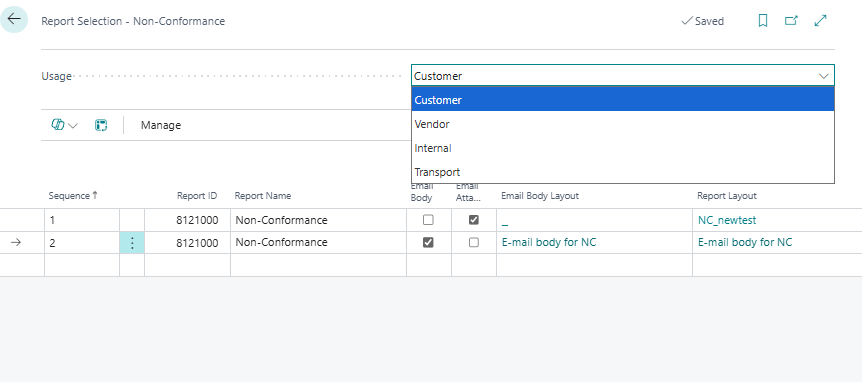 - In Report Selection - Non-Conformance (Usage = Customer):