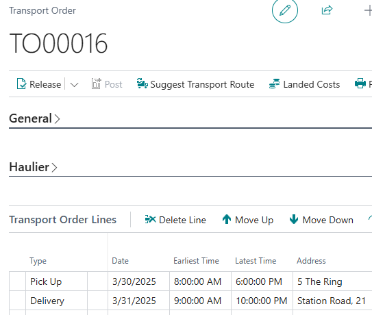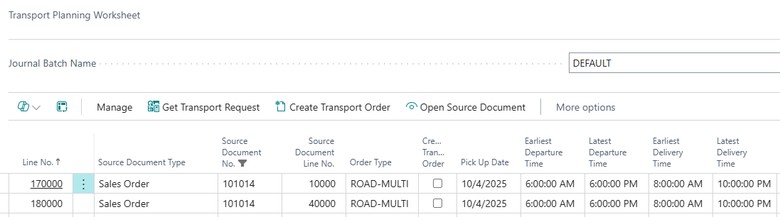 Transport Order lines inherit the Latest and Earliest Departure/Delivery Times from the source document or source Transport Planning Worksheet Lines.