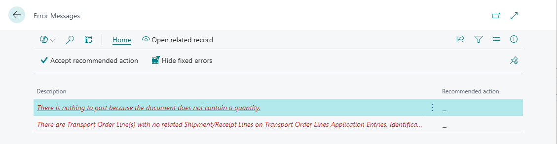 - Description: Posted quantities of the source document line were updated. No change on the transport order line quantity was reflected. Please review the transport order line.