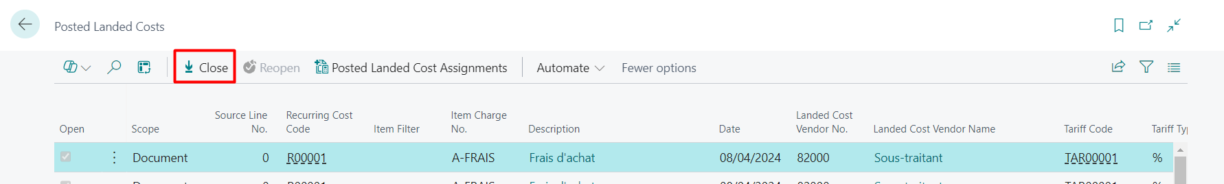 In this case, the Line remains in that page, cannot be reopened and will not move to the Posted Landed Costs. Also, when clicking on “Calculate”, the Landed Cost that is closed won’t be recalculated.: