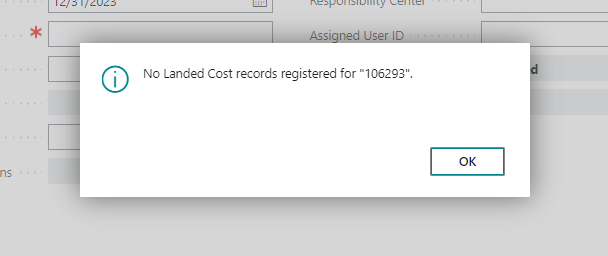 - If Tariff is based on amount and on Source Document Line the Unit Cost/Price is not filled, then the Landed Cost is not calculated.