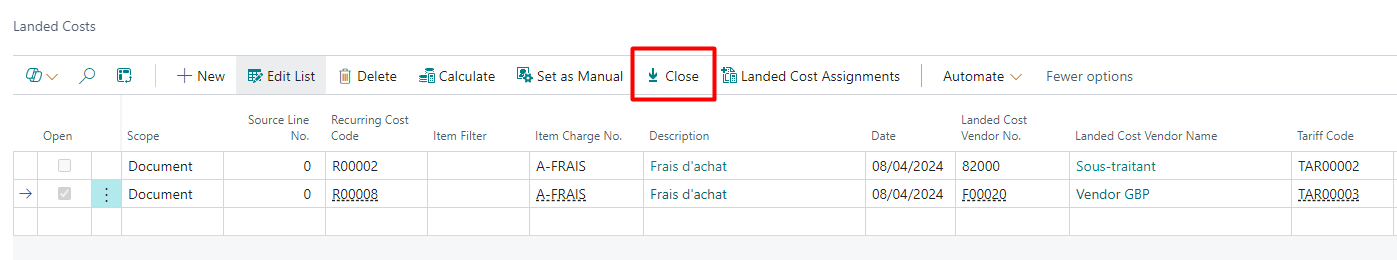 - In case this happens on Landed Costs assignment, it is necessary to Close the Landed Cost on Landed Costs page: